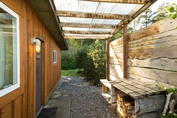FIdalgo Cabin is a beachfront cabin furnished with a fully-equipped kitchen and a newly remodeled bathroom with shower. The cabin is heated with a wood stove and has an additional electric heater in the bathroom and living room. Each cabin has a private picnic table. Fidalgo has two bedrooms with a shared bathroom. Each bedroom has a queen-size bed (*bedrooms have less than standard 36” bed clearance) The living room/kitchen area is an open floor plan and has large picture windows with a beautiful view of the San Juan Islands and Mount Baker. This is the last cabin in the row of 6 and tends to offer more privacy.