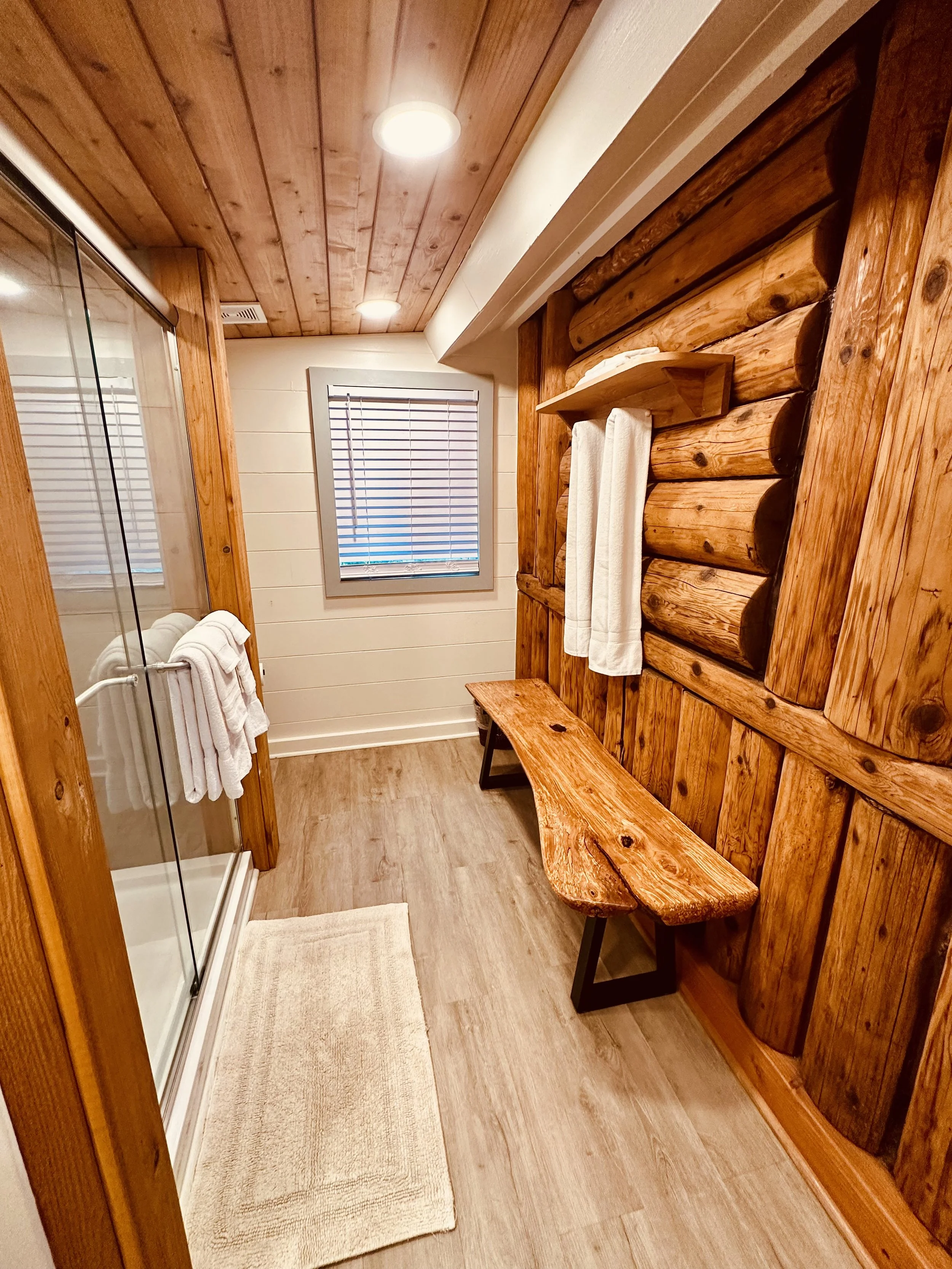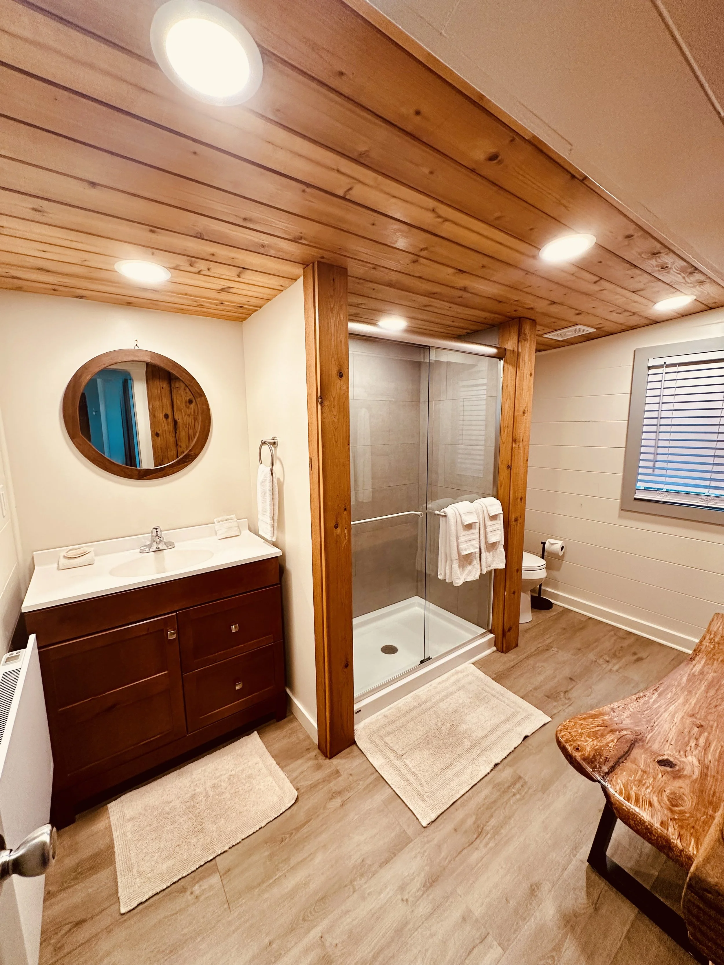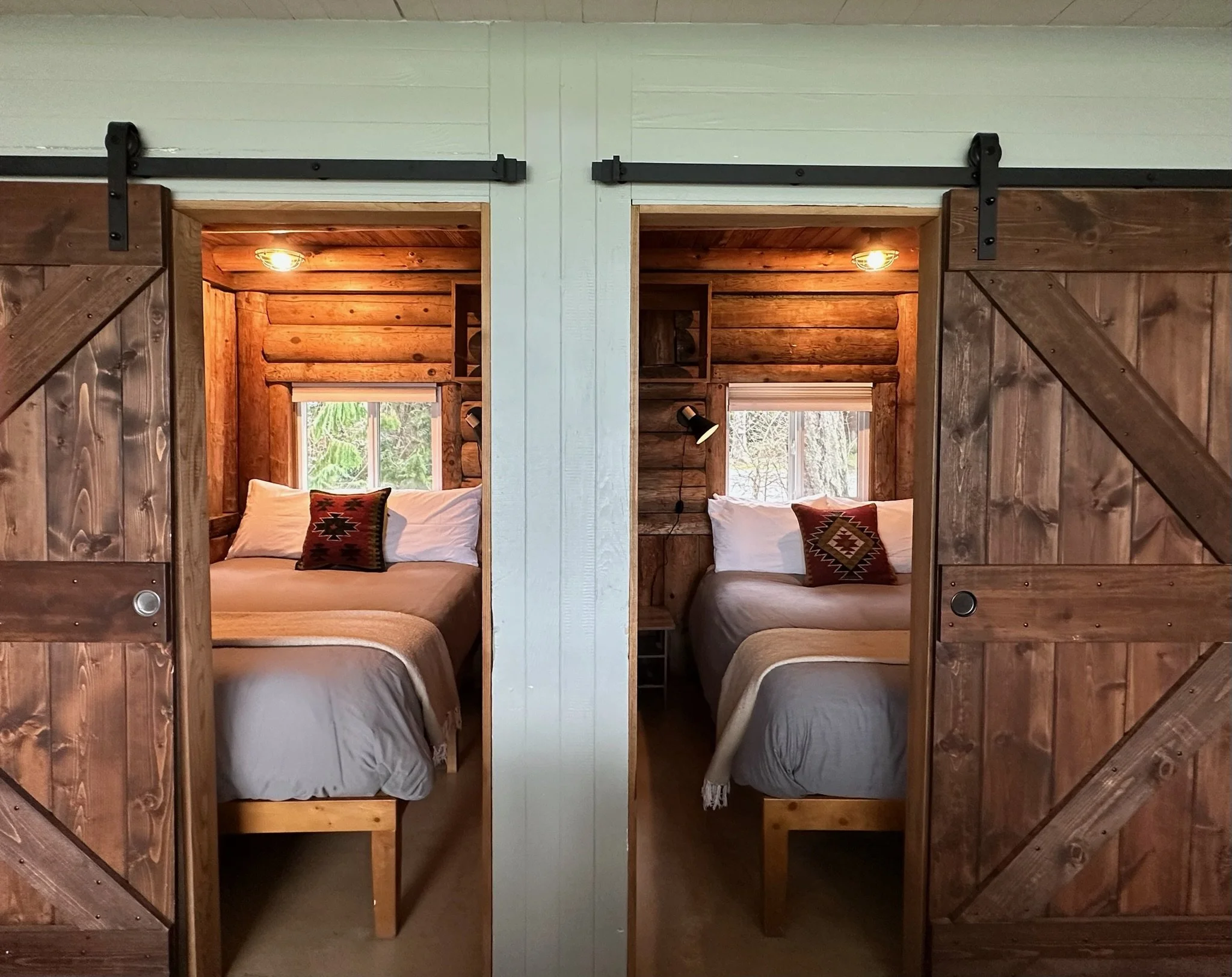 This beachfront cabin has a fully-equipped kitchen and a newly remodeled bathroom with shower. The cabin is heated with a wood stove and has an additional electric heater in the bathroom and living room. Each cabin has a private picnic table. There are two cozy bedrooms with full-size beds (*bedrooms have less than standard 36” bed clearance) Large windows in the living room allow for natural lighting and wonderful views of the water and Mt. Baker.