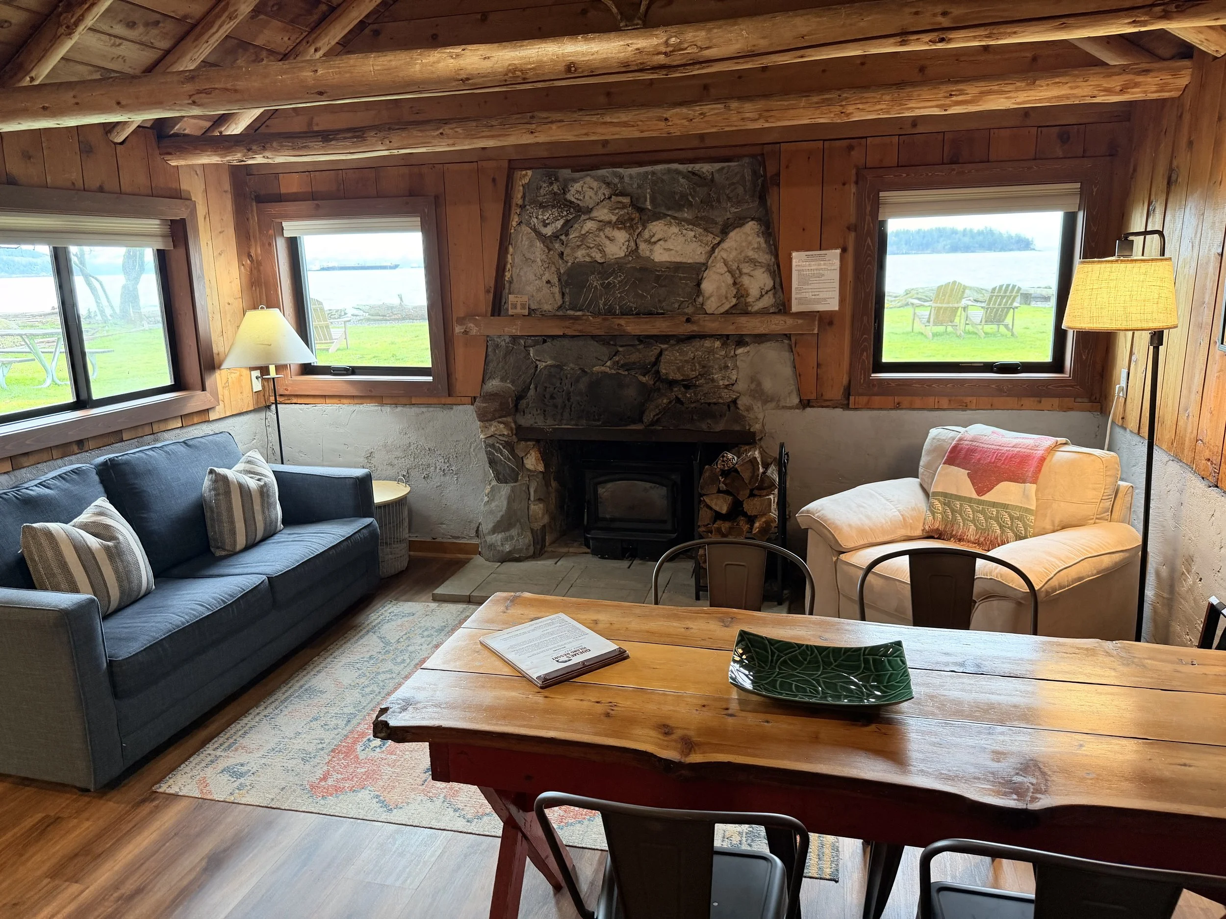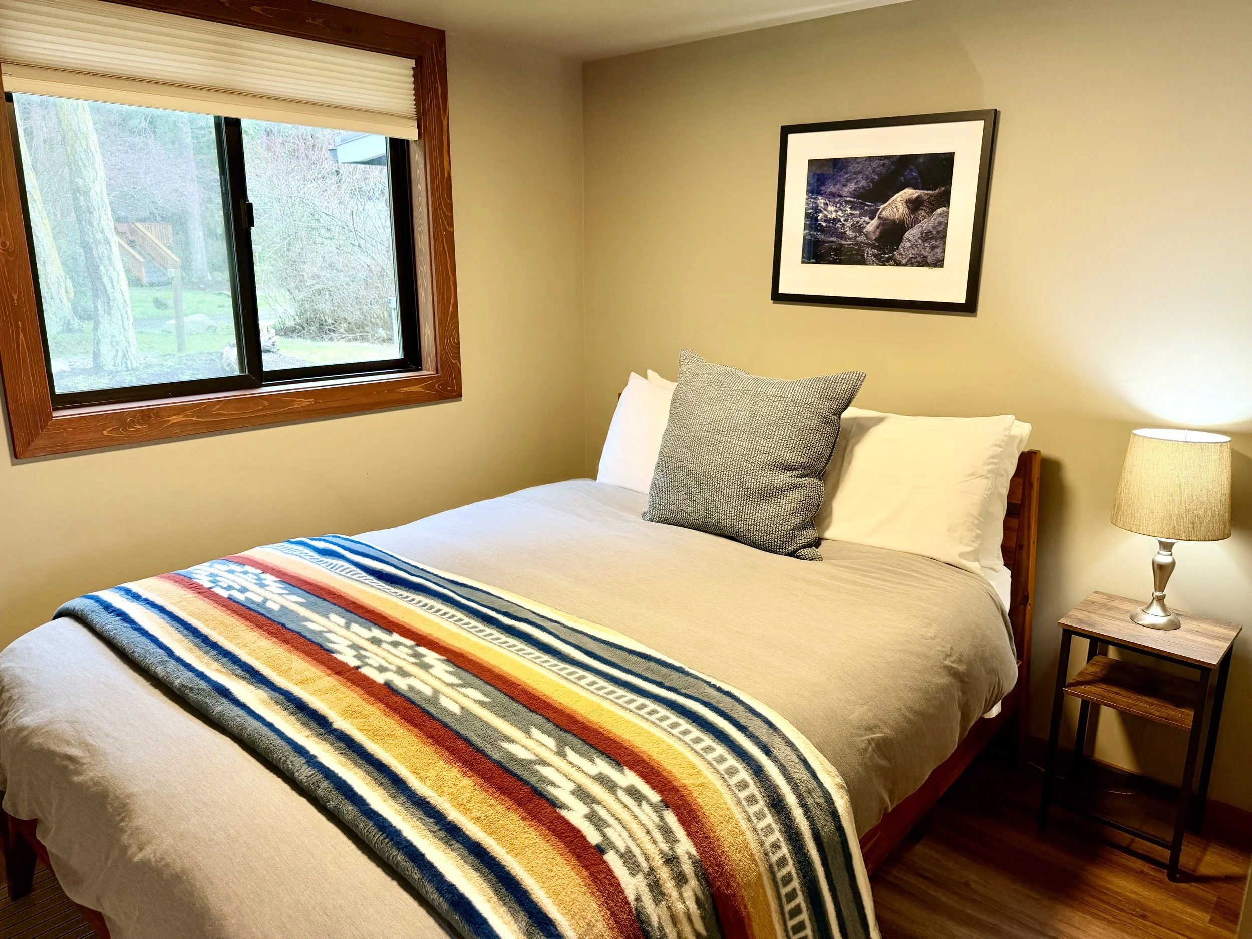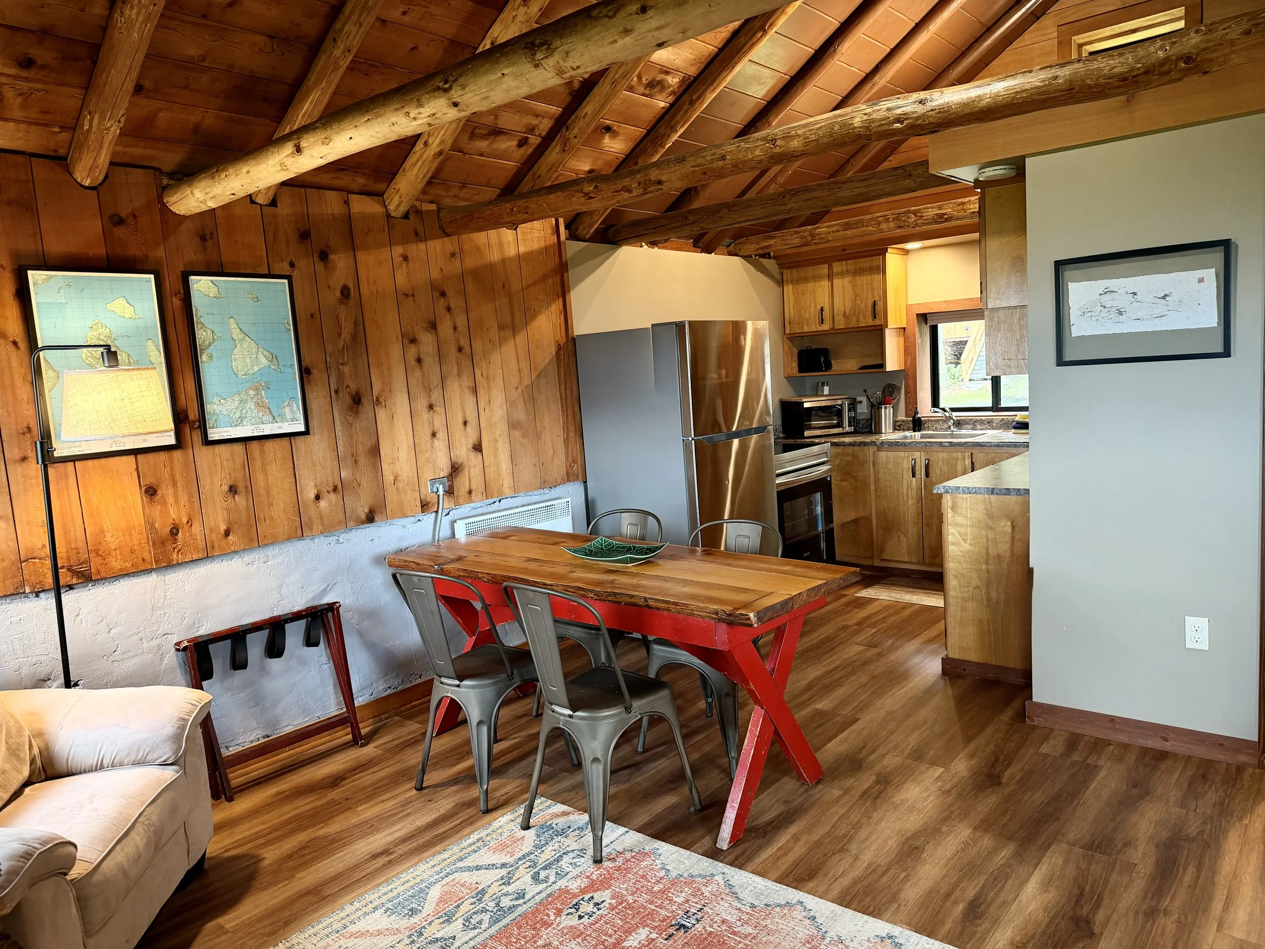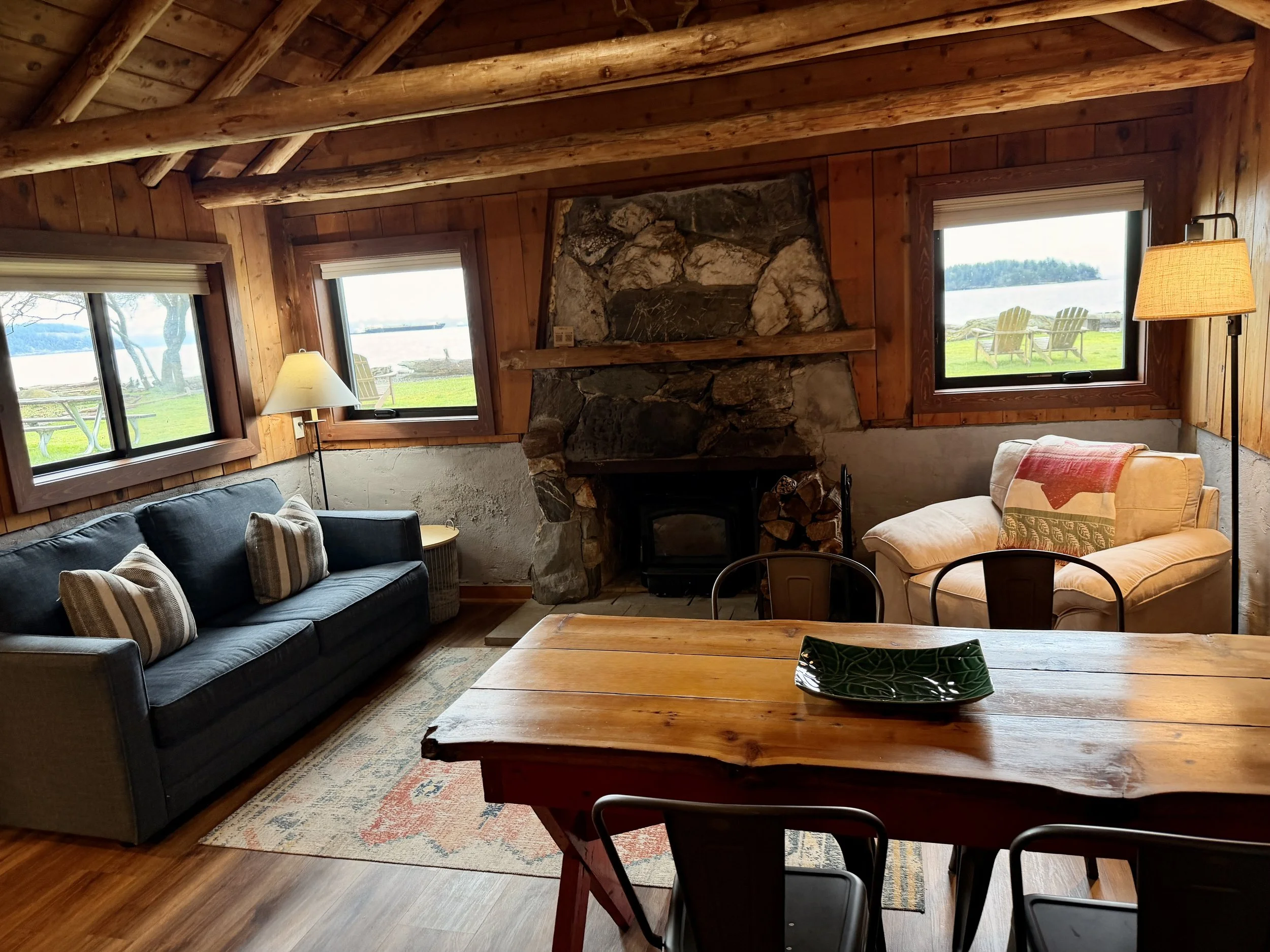 Swinomish is a newly renovated beachfront cabin, just steps from the beach and water, with stunning views of Mount Baker and the nearby islands! There is a full kitchen and a full bath with shower. The cabin is heated with a wood stove and has additional electric heaters in the bedroom, bathroom and living room. Swinomish is a one-bedroom cabin with a queen-size bed. The living room has a full-size sleeper sofa. (*bedroom has less than standard 36” bed clearance). Each cabin has a private picnic table.